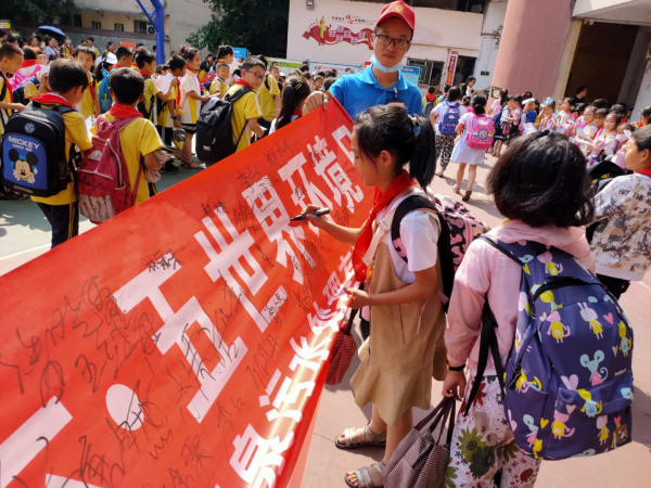 為大力倡導(dǎo)“綠水青山就是金山銀山”的環(huán)保理念,喚起人們愛護(hù)地球、保護(hù)家園的環(huán)保意識(shí),6月5日上午,惠泉污公司組織干部職工、黨員代表、自愿者共15人,與通川區(qū)分公司一道,在西外羅浮廣場(chǎng)積極開展了“美麗中國(guó)、我是行動(dòng)者”“六五”環(huán)境日集中宣傳活動(dòng)?;顒?dòng)中,共發(fā)放環(huán)保宣傳資料20000余份,接受水環(huán)境有關(guān)咨詢70余件,解答處理相關(guān)問題10余件,收集環(huán)保意見建議35條。同時(shí),當(dāng)天周家壩污水廠也結(jié)合自身實(shí)際,與河市鎮(zhèn)耀華育才學(xué)校一道開展了“我是行動(dòng)者、爭(zhēng)當(dāng)小衛(wèi)士”環(huán)保宣傳“進(jìn)校園”簽名活動(dòng)。