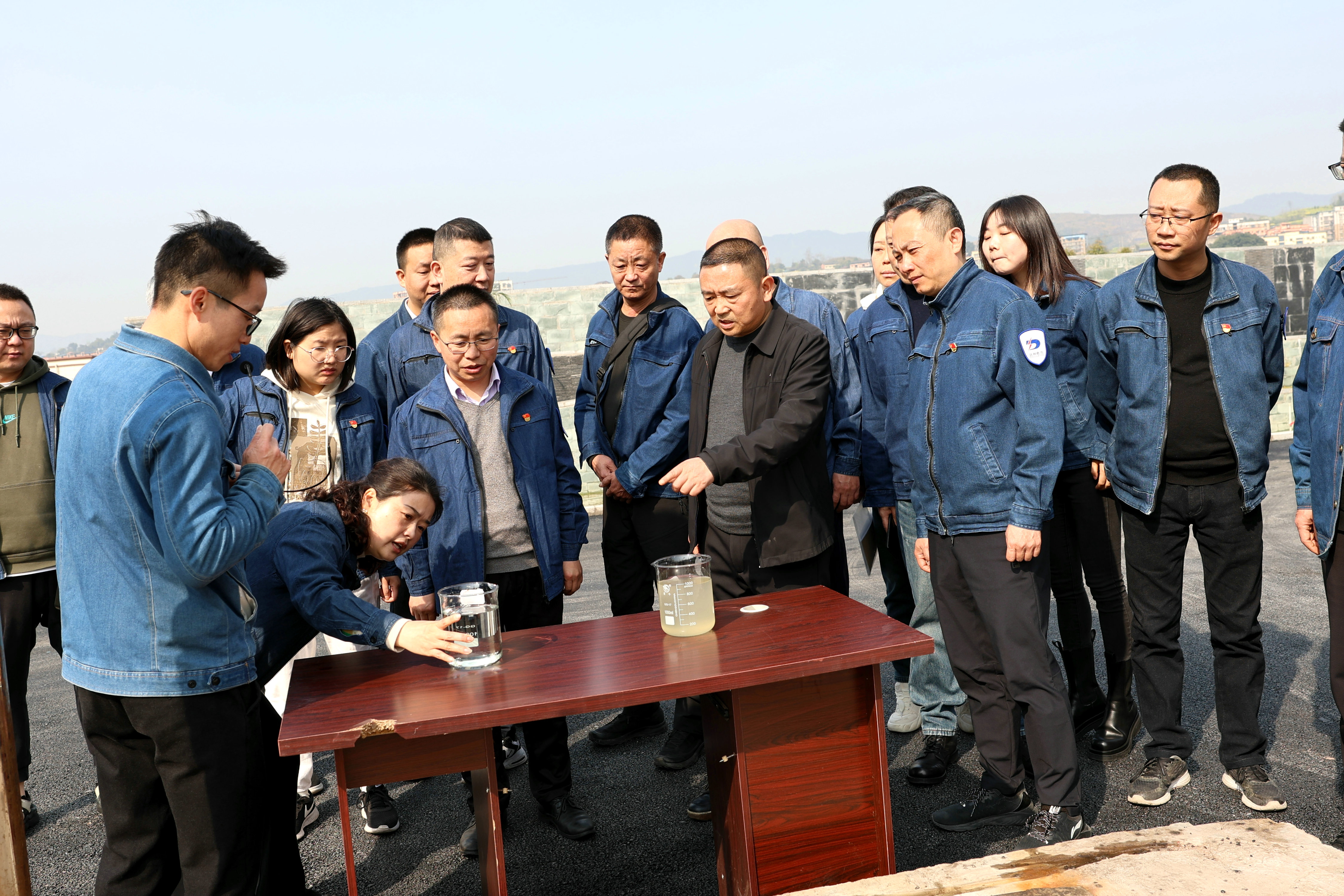 活動中,惠泉污水公司經(jīng)營負責人陳志星向參觀人員詳細講解了污水處理工藝和流程。大家參觀了進水口、上生化池、脫泥間、二沉池、中控室、出水口生活污水處理全部工藝流程,現(xiàn)場還取來不同階段的水進行由濁到清的直觀比對,讓大家的參觀感受更加深刻。
