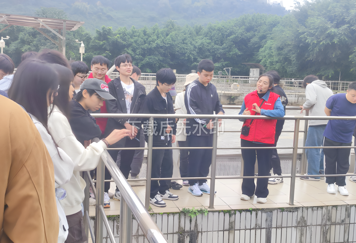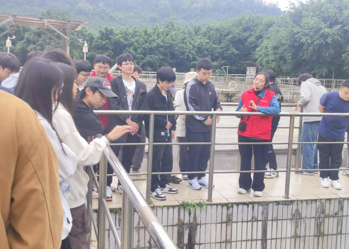 培訓(xùn)中,惠泉公司三名管理人員分別帶隊,組織學(xué)參觀了入水口、粗格柵、細格柵、沉砂池、生化池、脫水車間、濾池、出水口污水處理設(shè)施詳細講解污水處理工藝。學(xué)生們一邊認真聆聽講解,一邊仔細觀察污水處理的各個環(huán)節(jié),不時提出問題與講解員進行交流。通過參觀與互動,學(xué)生對污水處理的每個環(huán)節(jié)有了深入了解,親眼見證了“渾流變清泉”的污水處理奇跡。